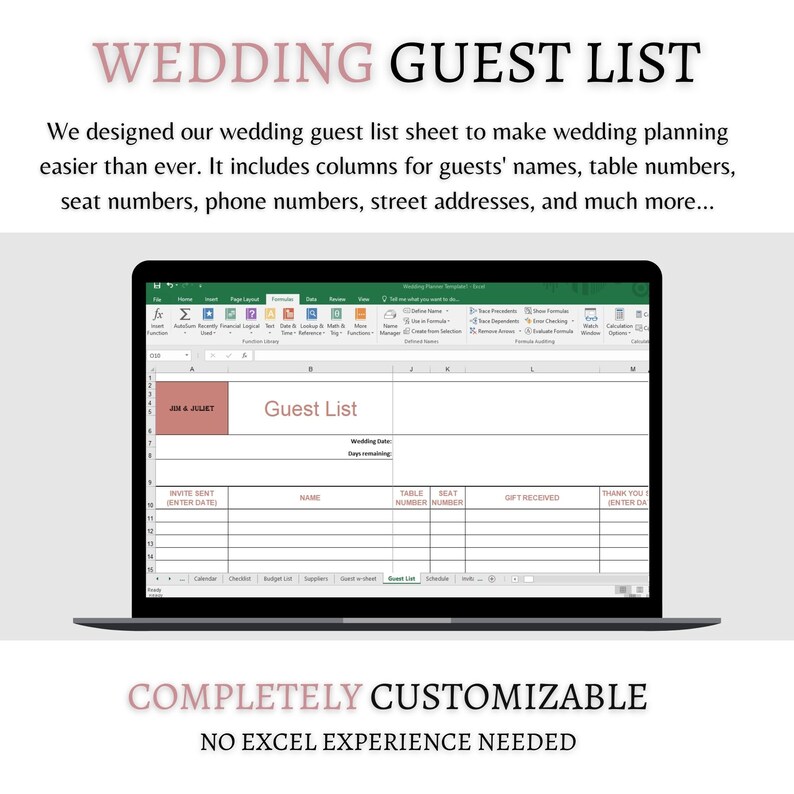 All in one Wedding Planner Excel Template Guest List Seating Etsy