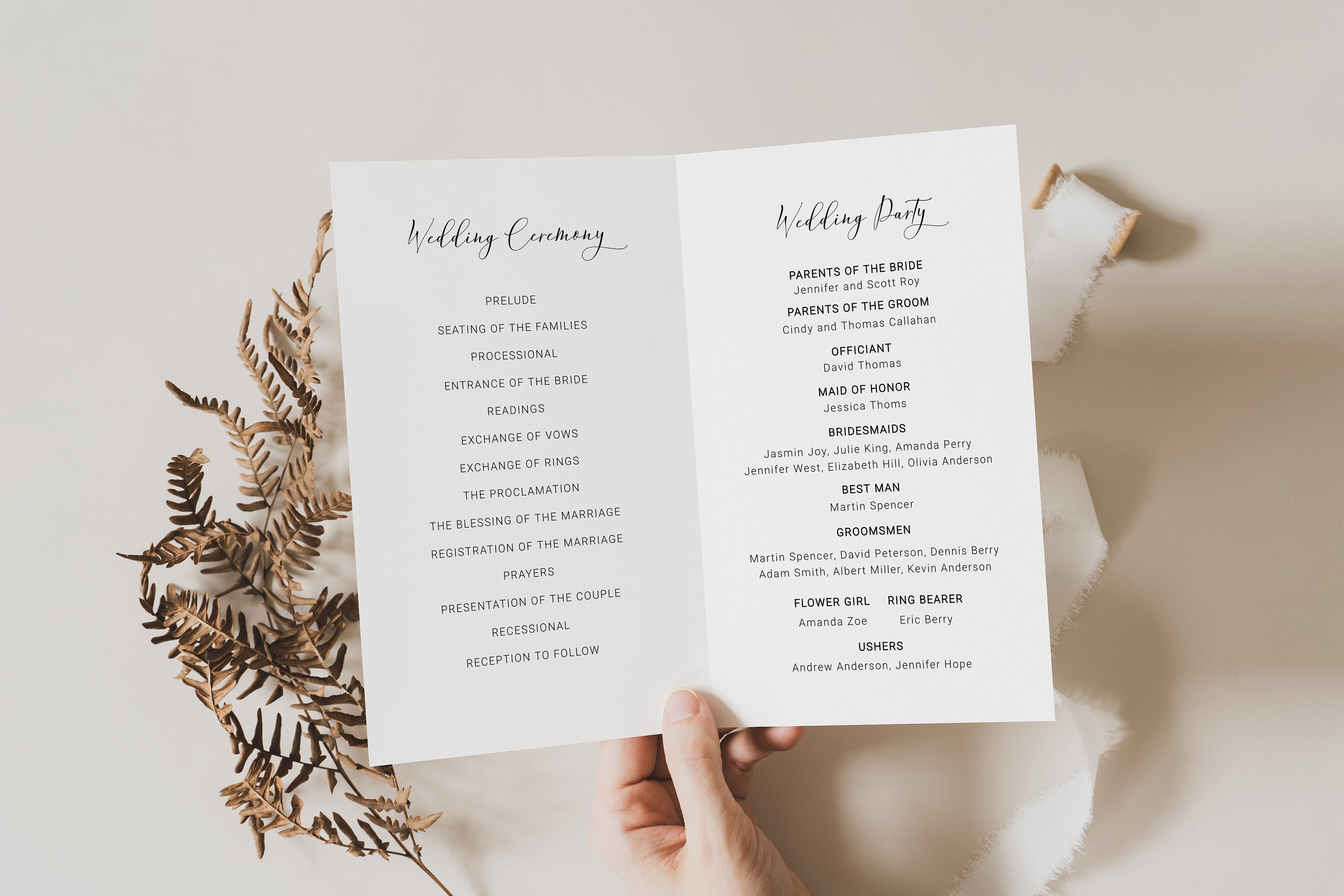 Church Wedding Program Timeline Template Foldable Modern Wedding