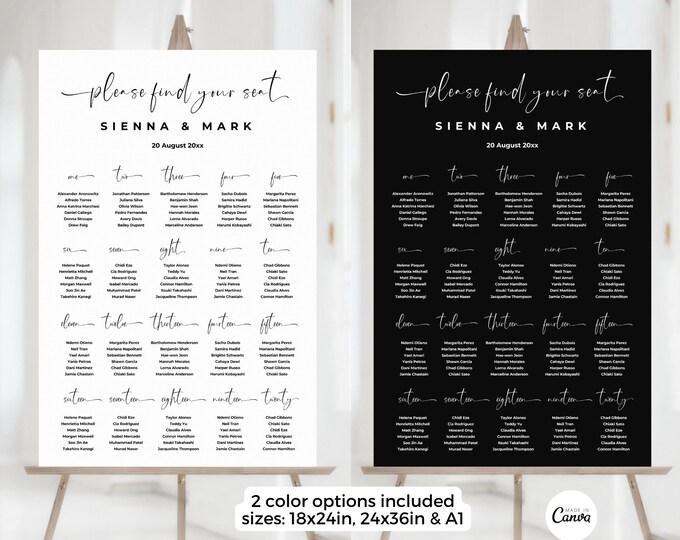 EDITABLE Wedding Seating Chart Template Modern Minimalist Our