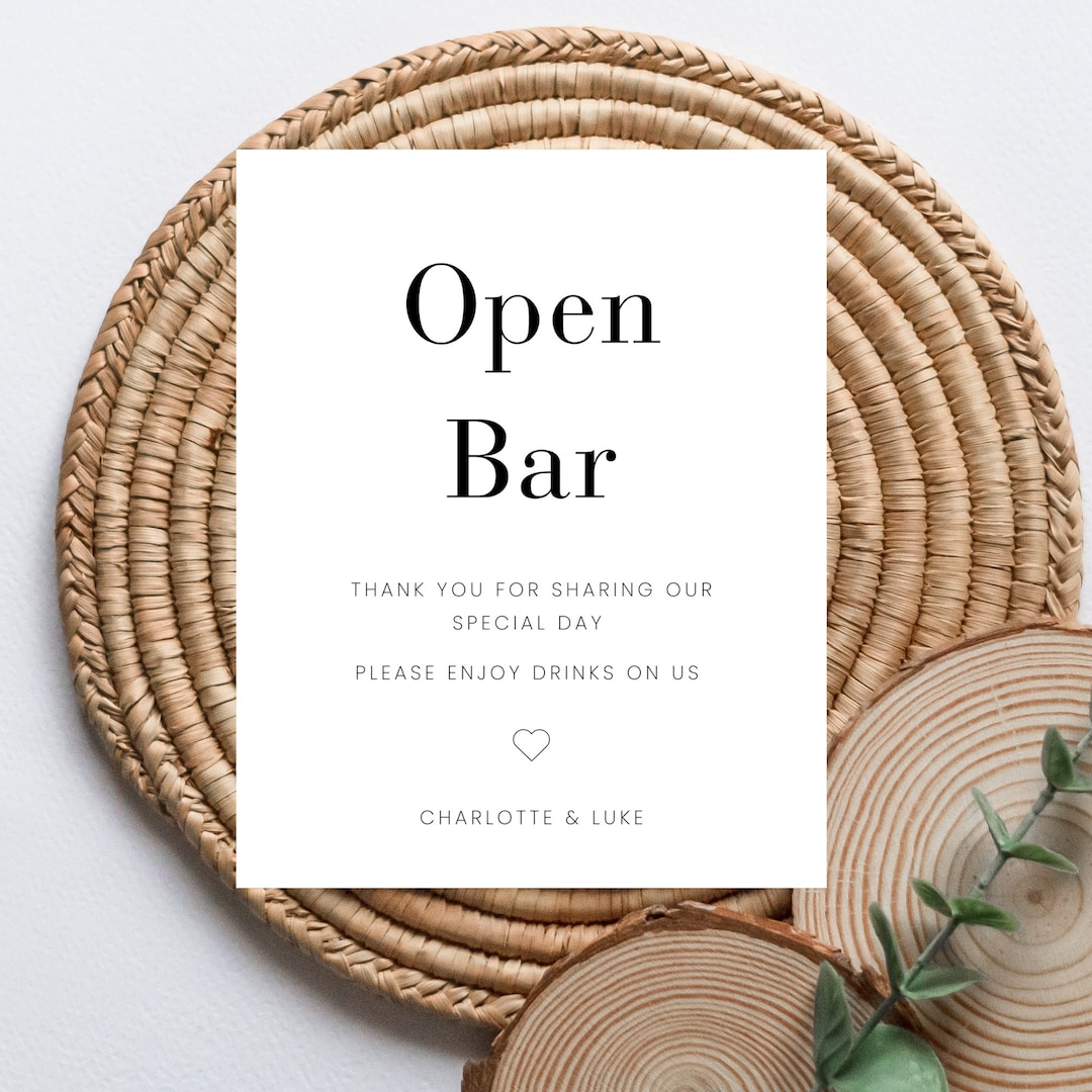 Minimalist Open Bar Wedding Printable Sign Modern Bar Sign Editable DIY