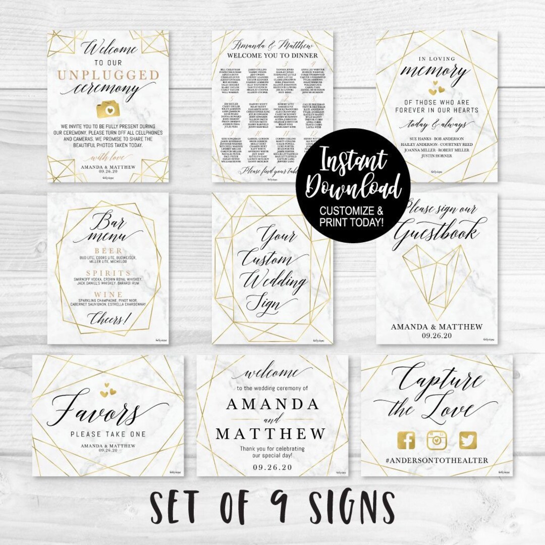 Wedding Signs Printable Bundle Printable Wedding Sign Etsy