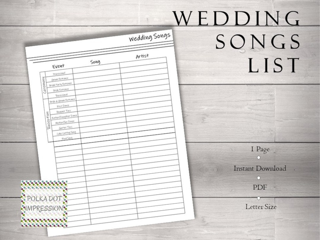 Wedding Songs Checklist Printable PDF Wedding Planning Music