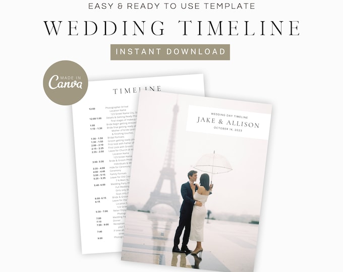 Photography Wedding Timeline Template Customizable Canva Template