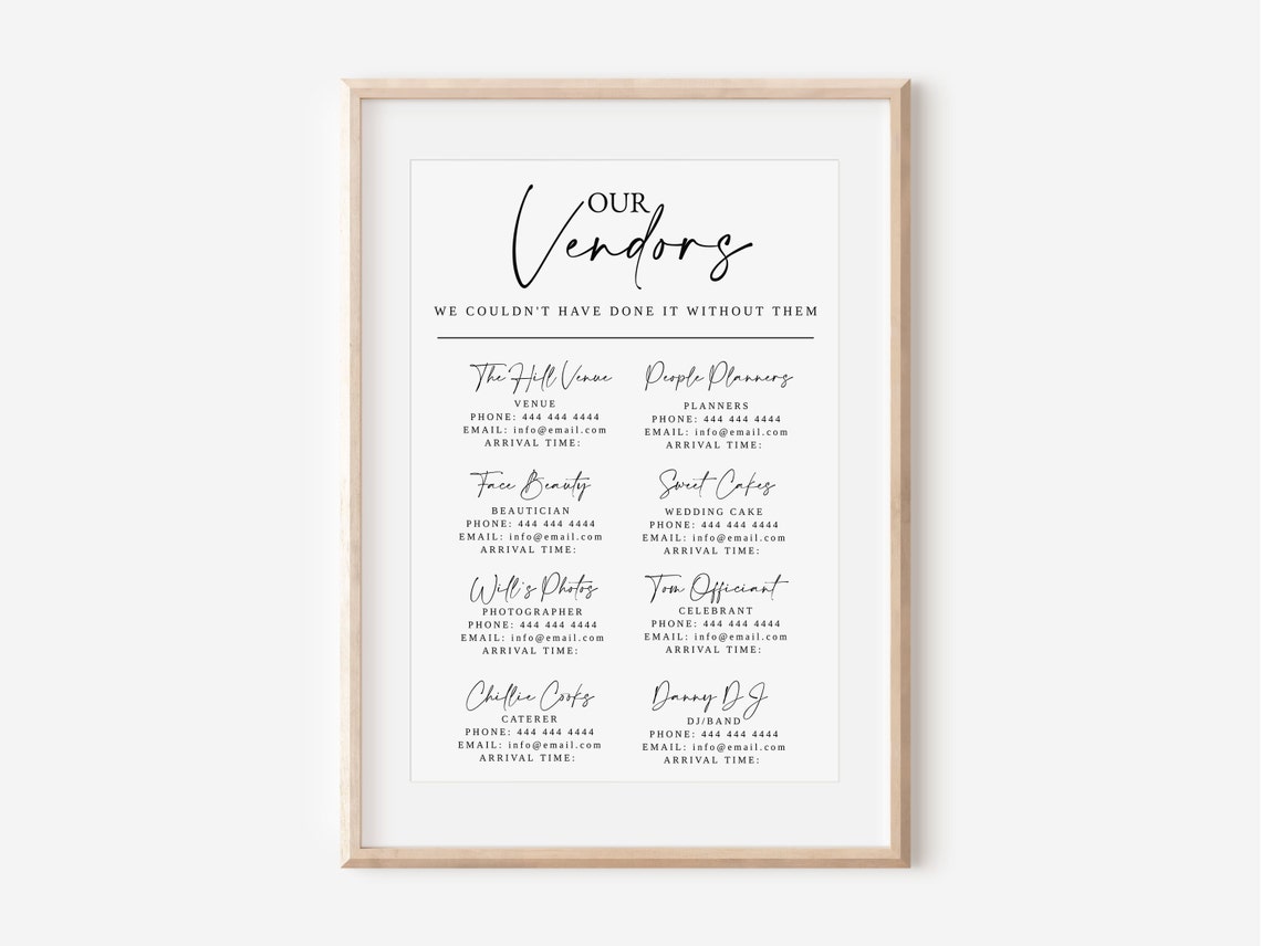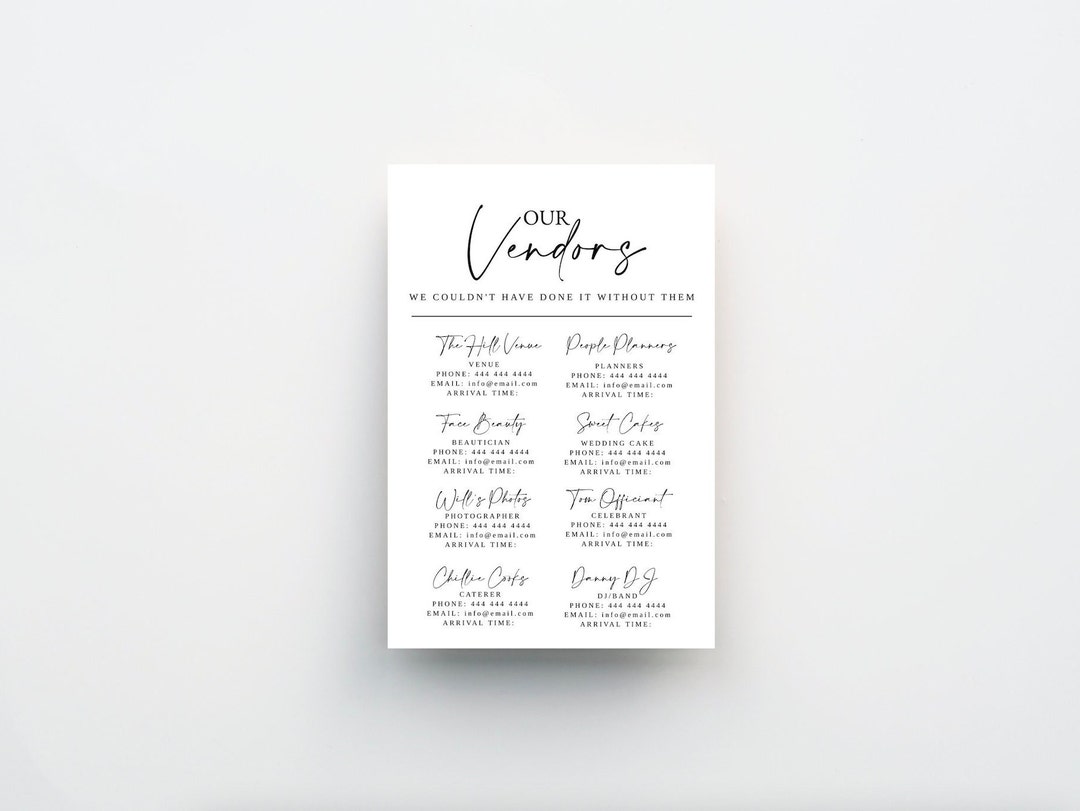 Wedding Vendor List Template Wedding Day Details Event Etsy