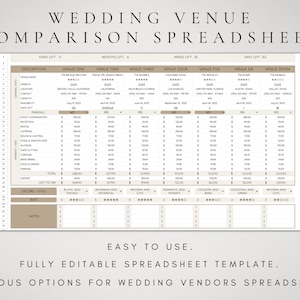 Wedding Venue Venue Comparison Spreadsheet Wedding Planner Instant