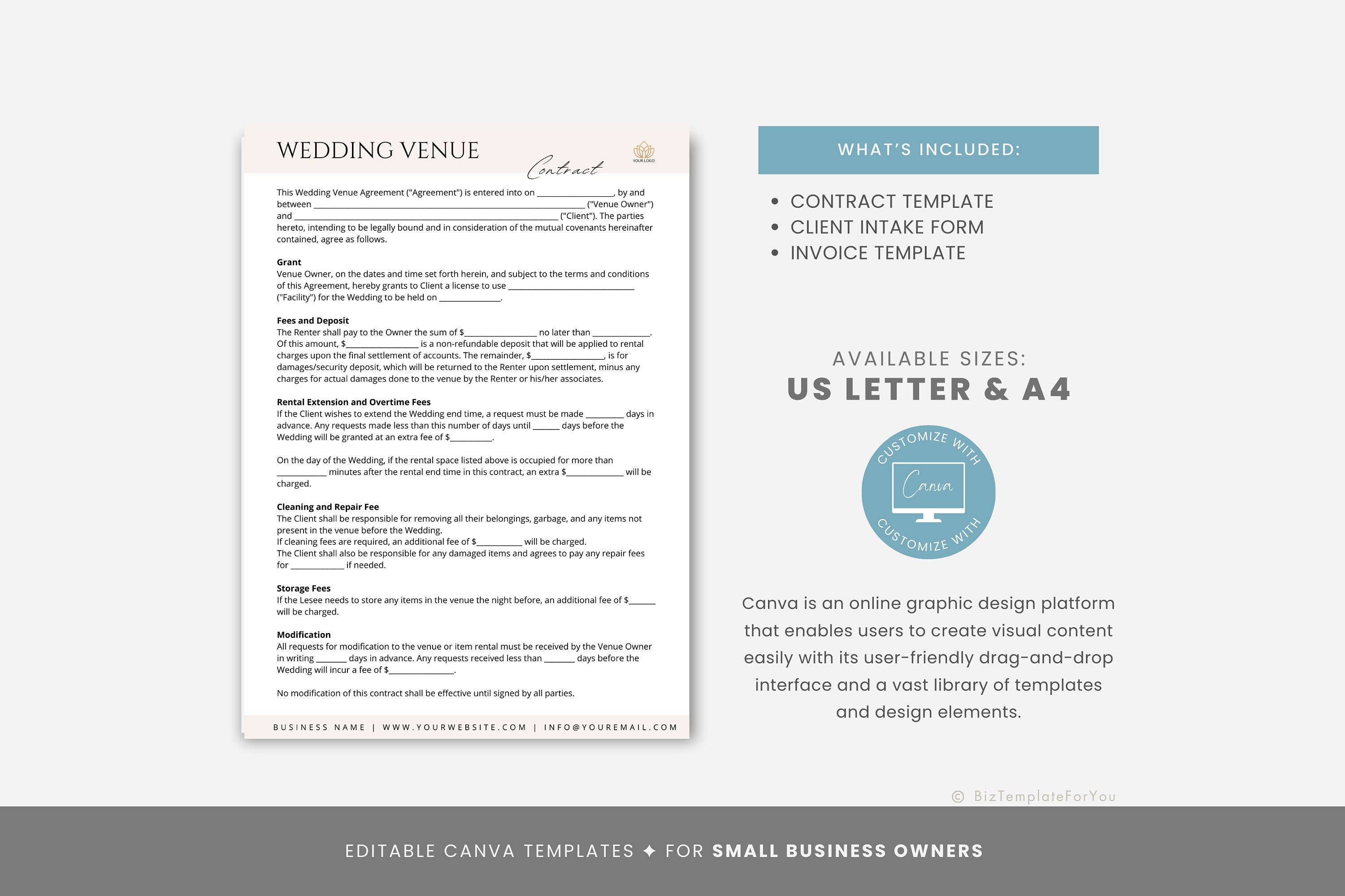 Venue Rental Forms Bundle Wedding Venue Contract Template Event