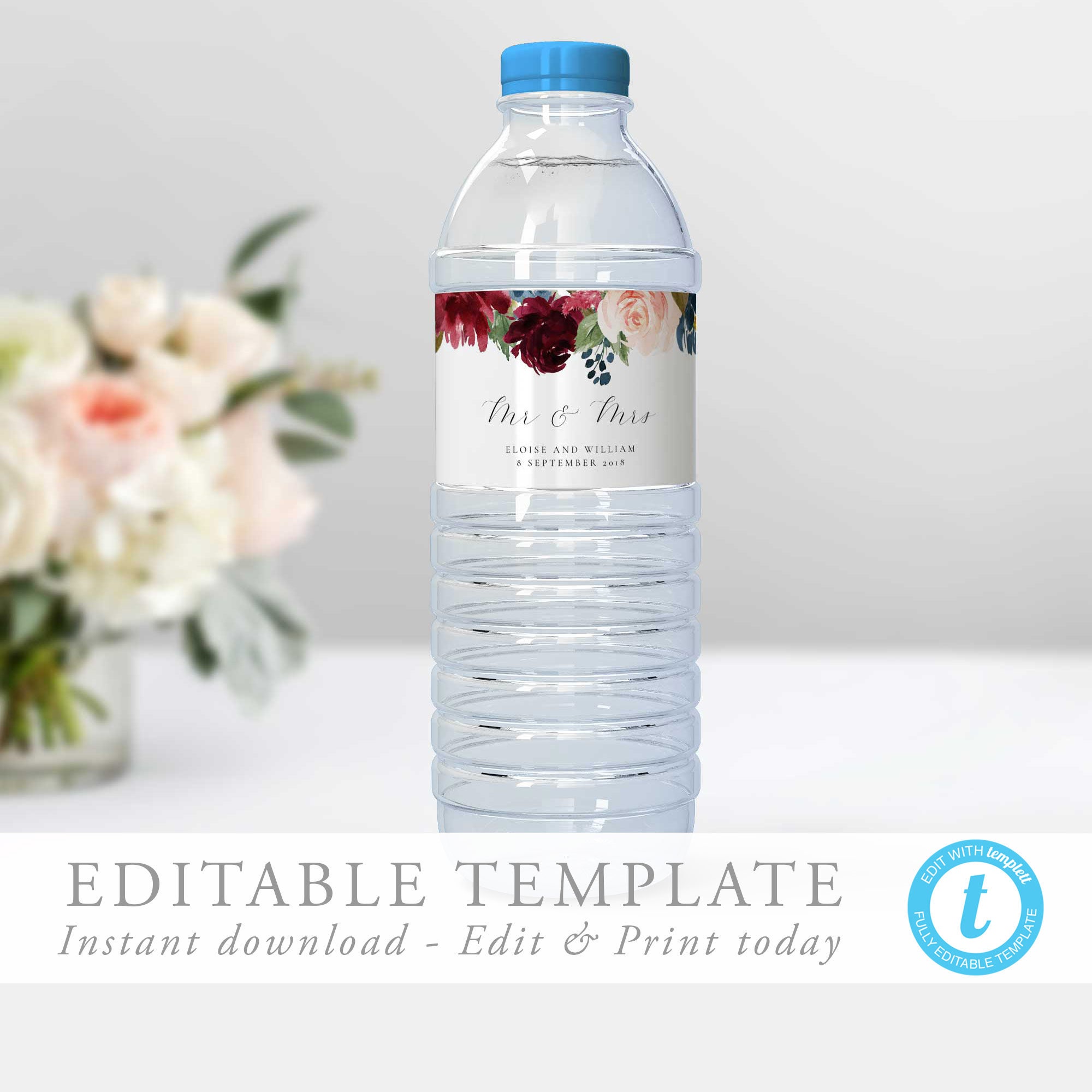 Wedding Water Bottle Labels Fully Editable Water Bottle Etsy