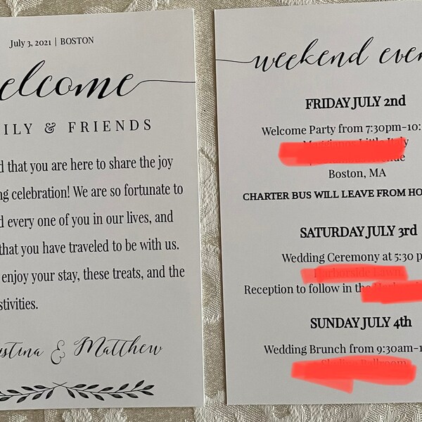 Minimalist Wedding Welcome Bag Letter and Timeline Wedding Welcome