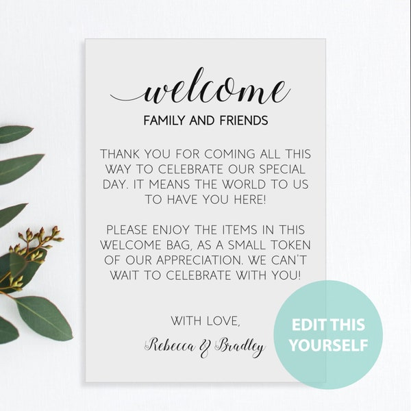 Printable Welcome Tag Wedding Welcome Bag Tag Favor Tag Editable