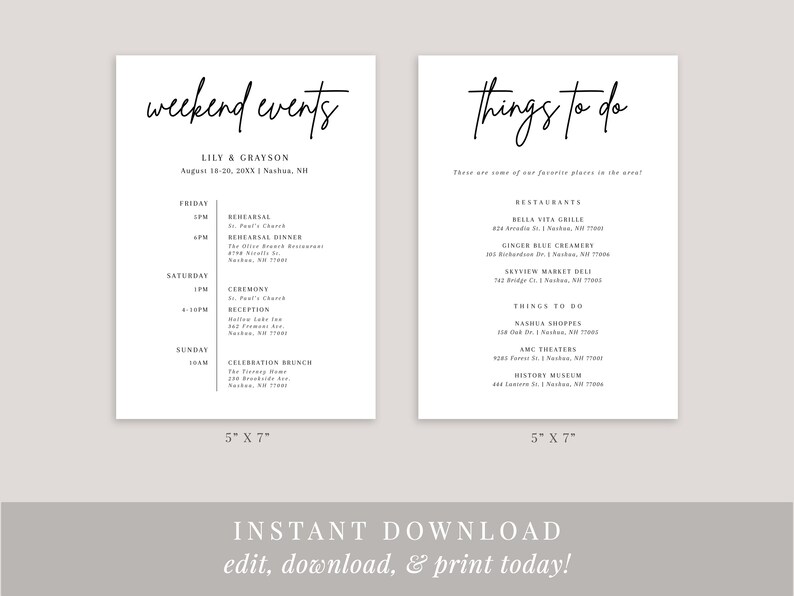 Modern Classic Wedding Welcome Card Template Editable Wedding Etsy