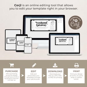 Weekend Getaway Gift Voucher EDITABLE Weekend Away Trip Ticket