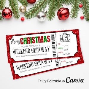 Editable Weekend Getaway Voucher Christmas Gift Certificate Ticket Card