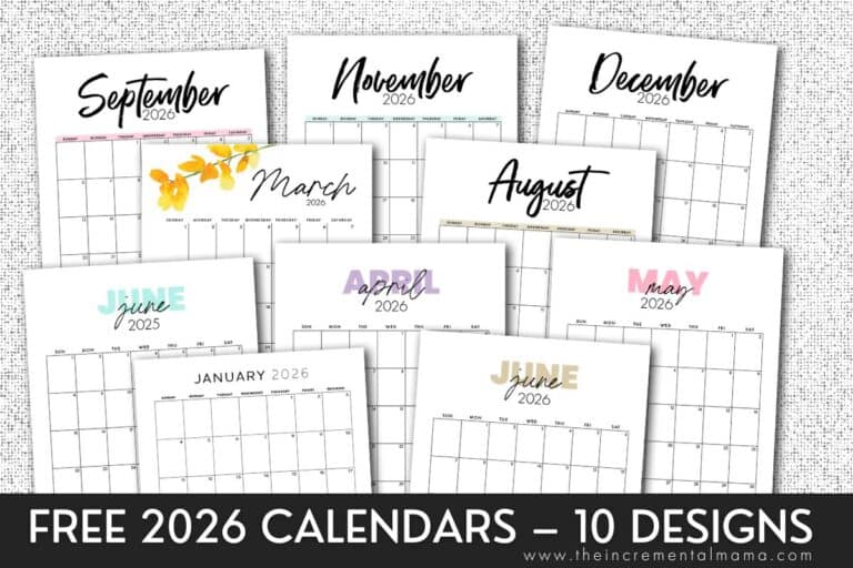 Free 2026 Monthly Calendar Printable (10 Designs) The Incremental Mama