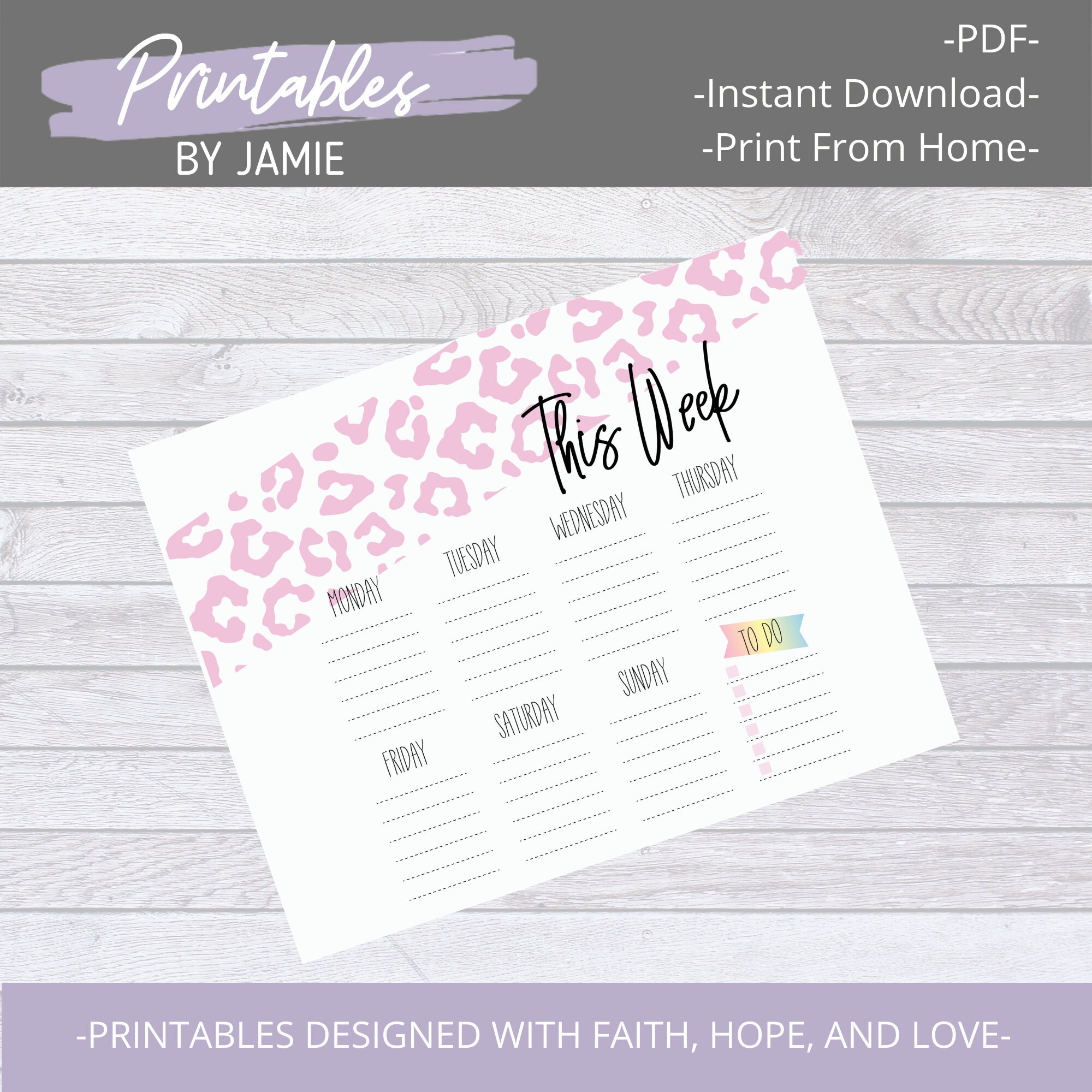 Printable Weekly Calendar PDF Weekly Planner PDF Calendar