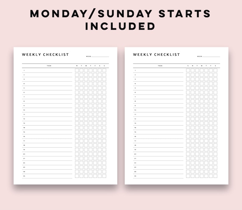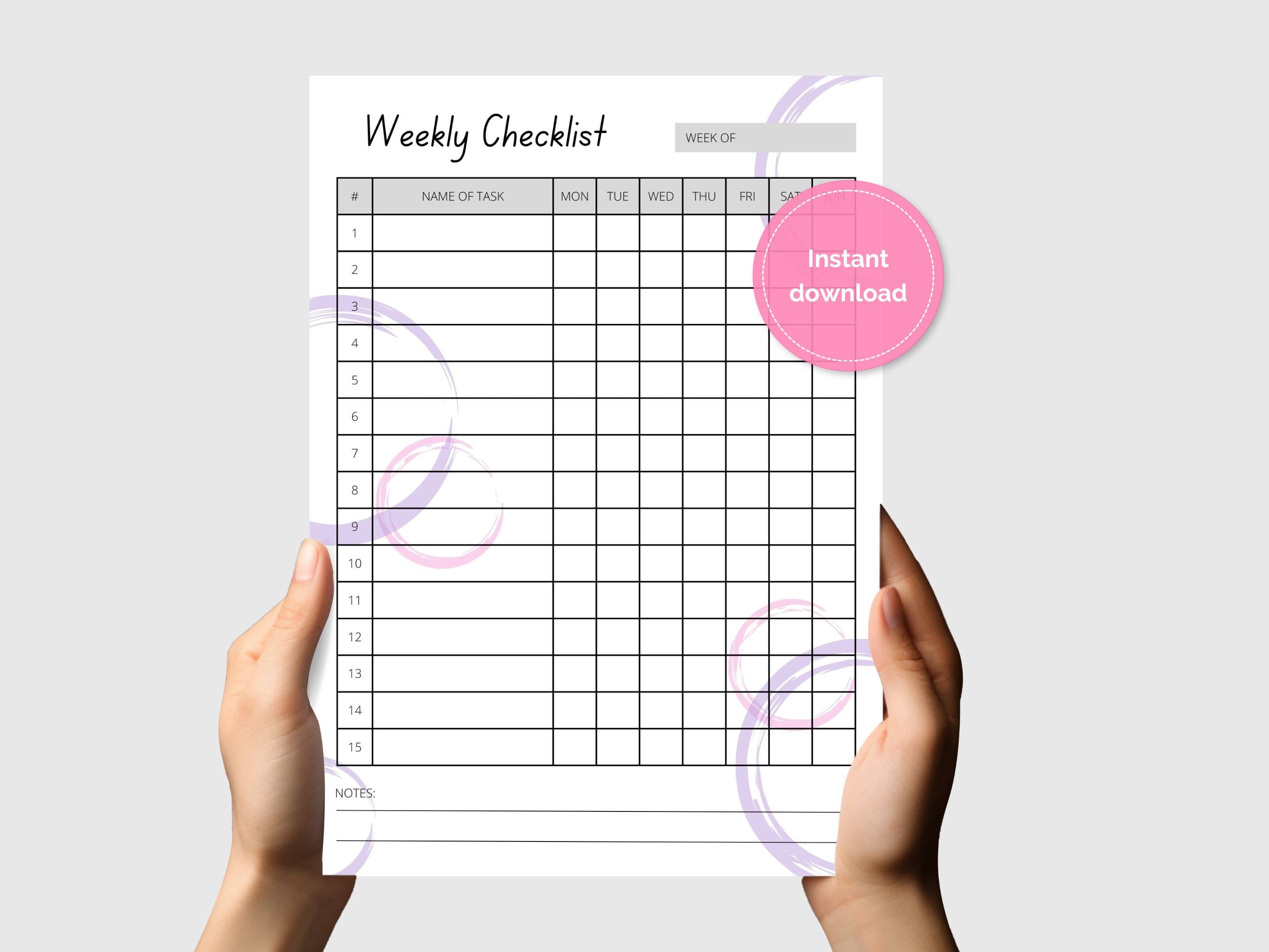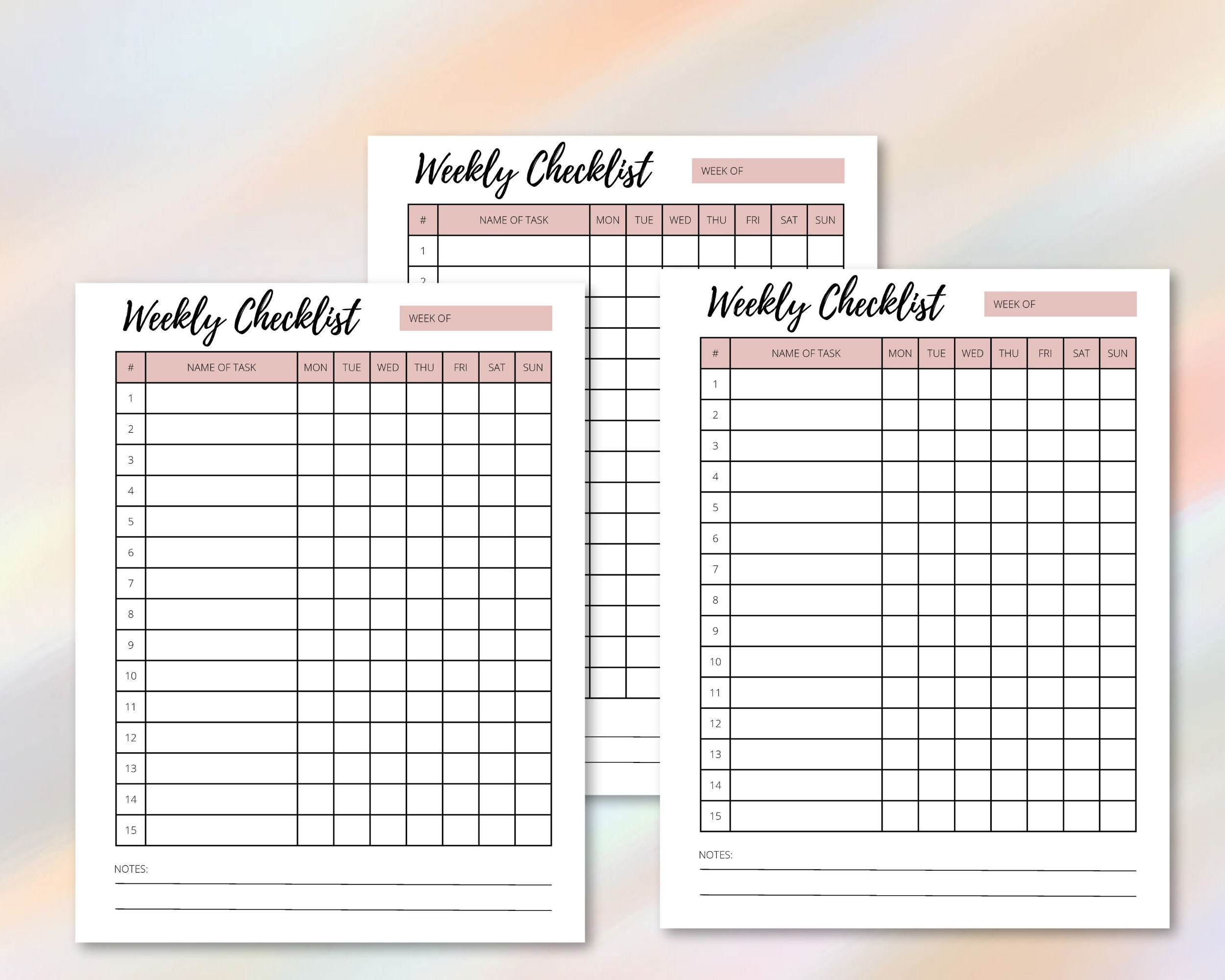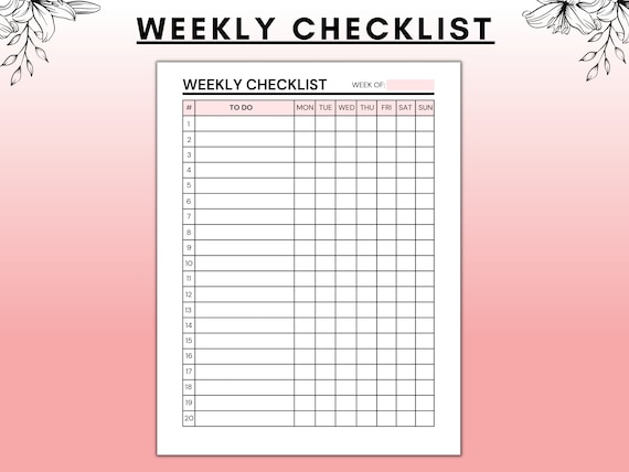 Weekly Checklist Printable to Do List Template Weekly Etsy UK