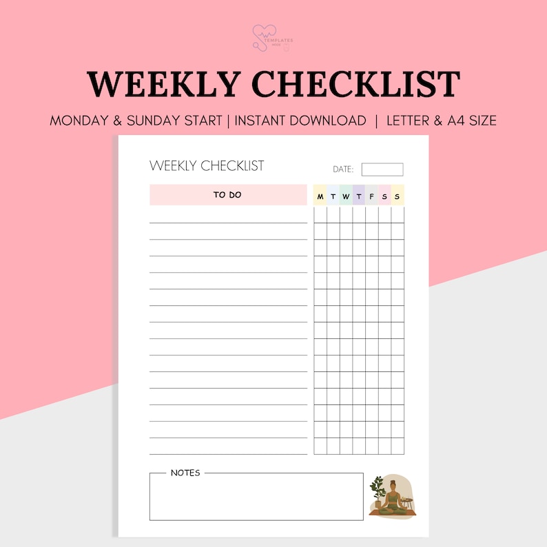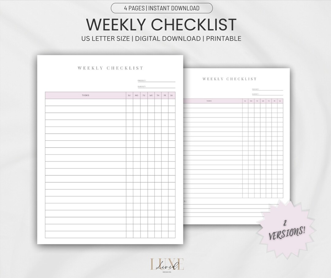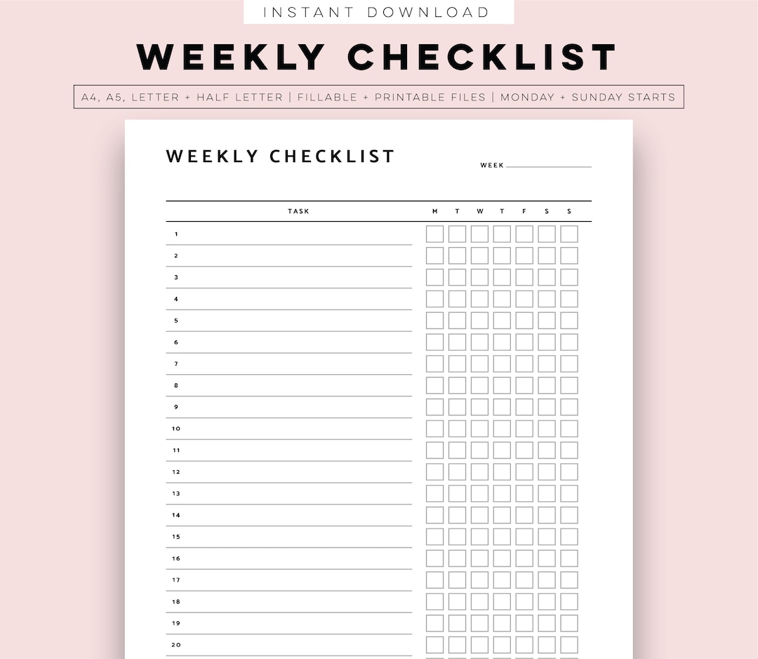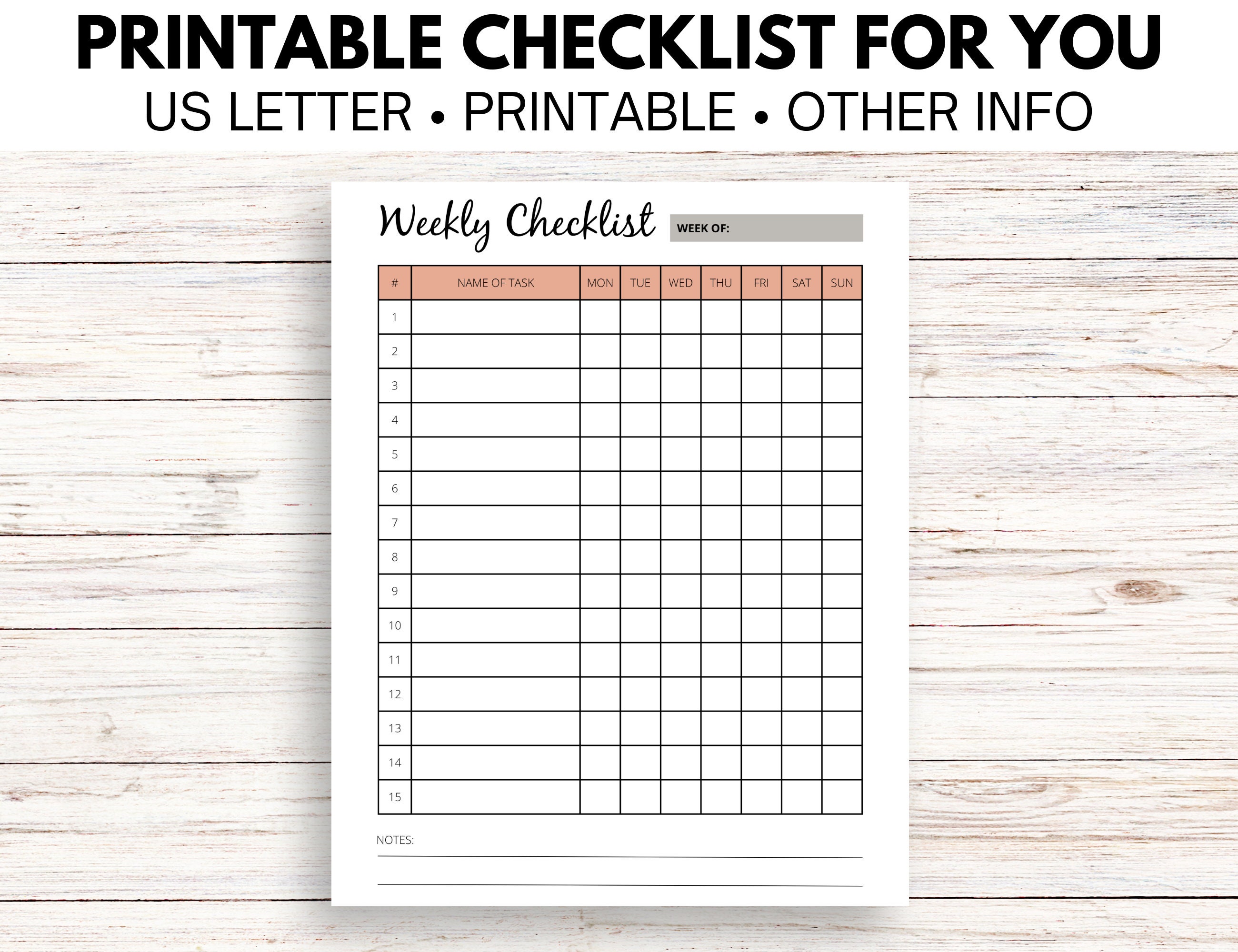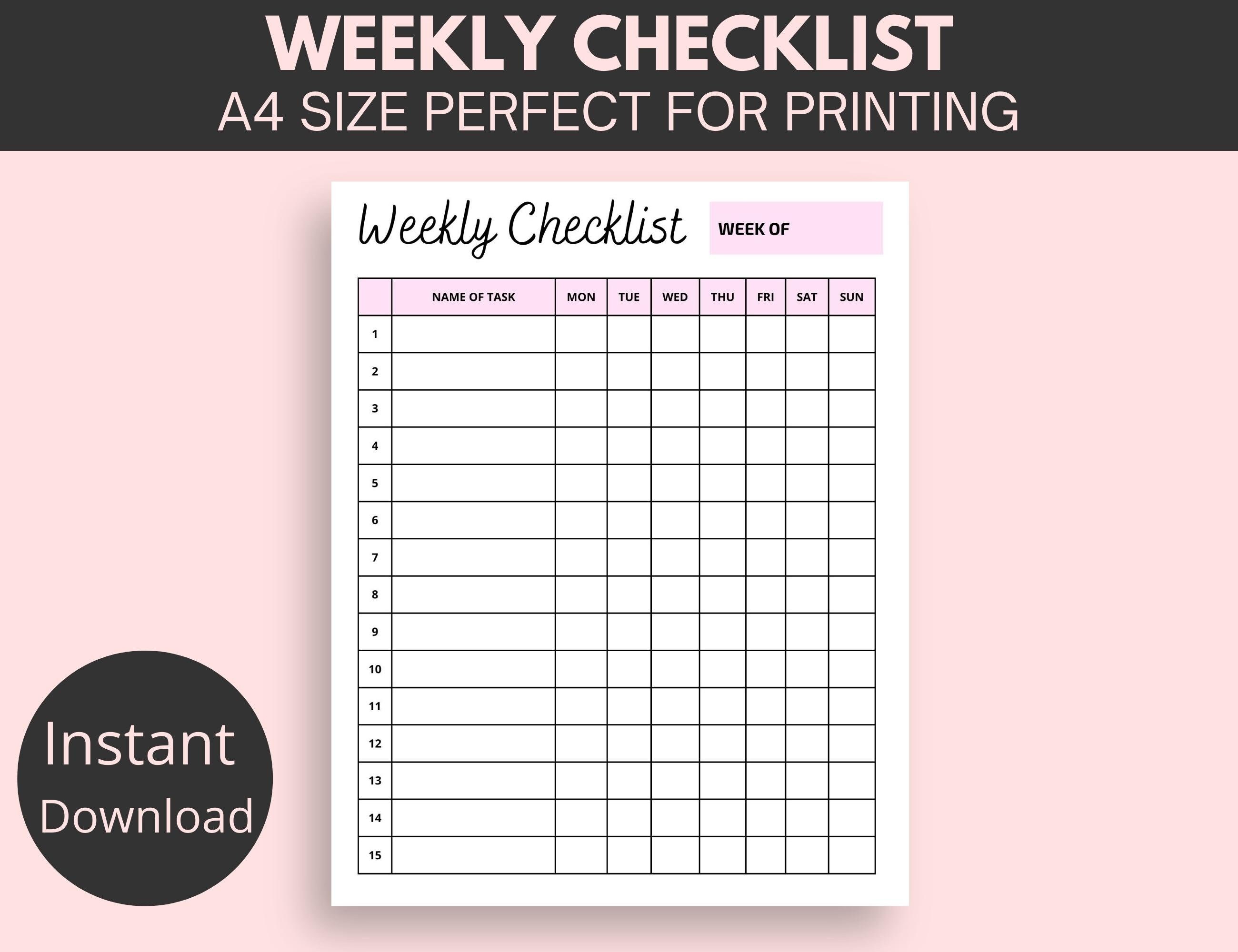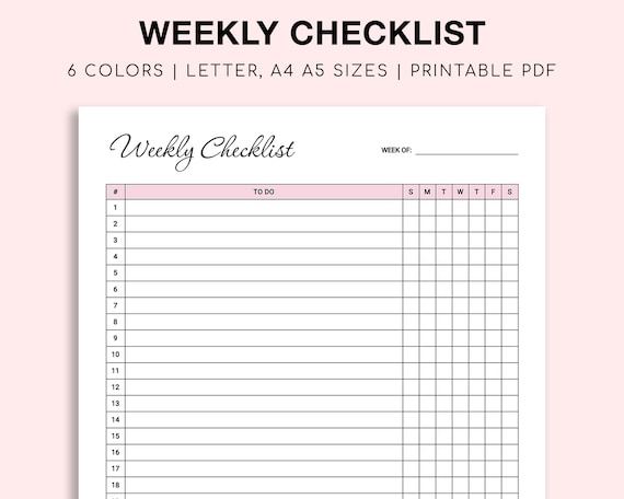 Weekly Checklist Printable to Do List Template Letter/a4 Etsy