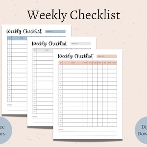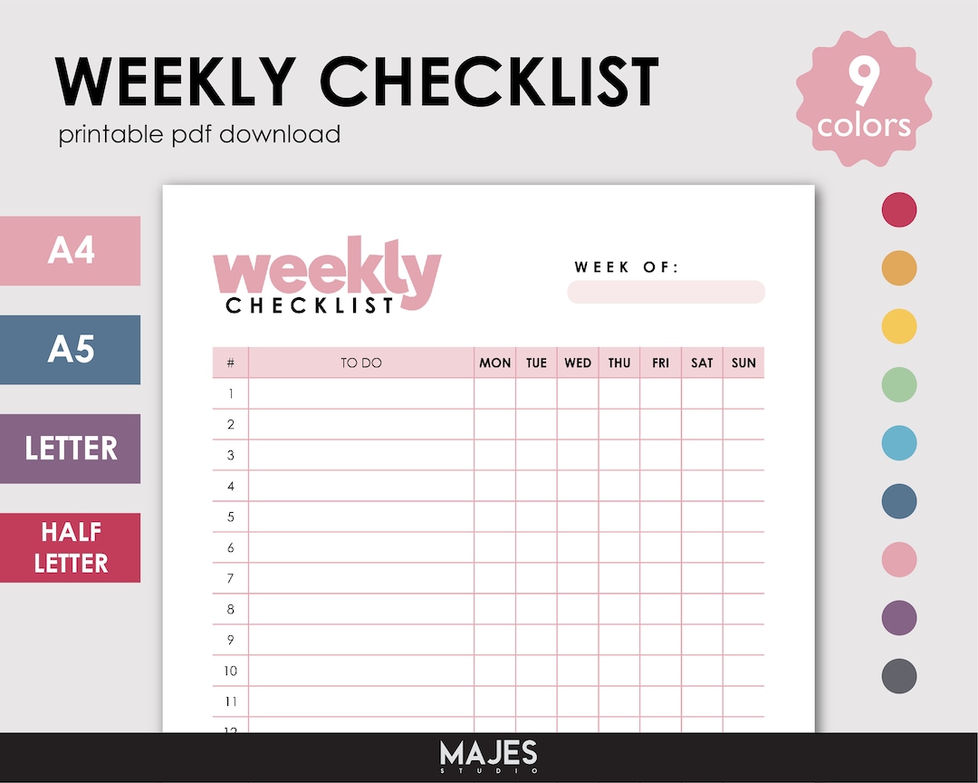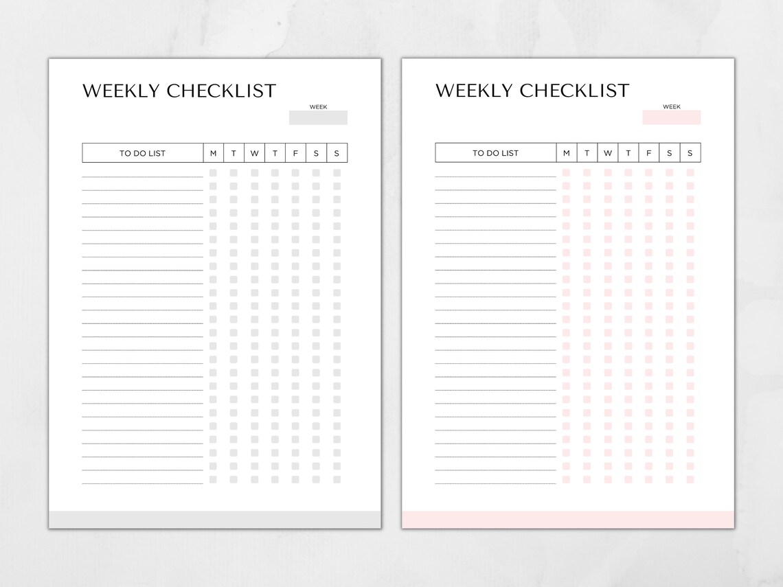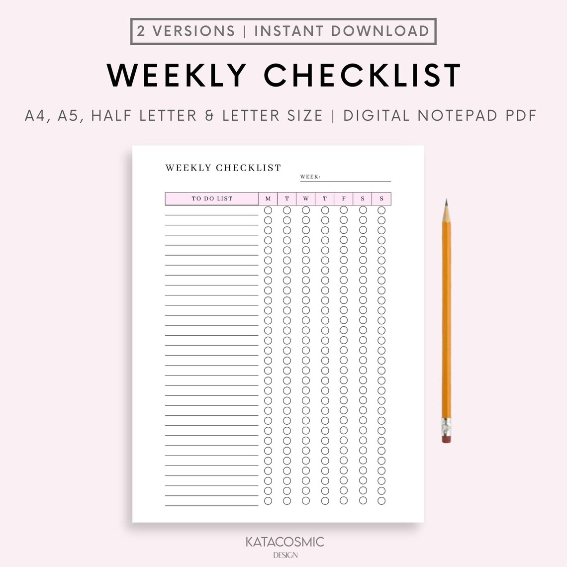 Weekly Checklist Printable PDF Template A4/a5/letter (3 Colors