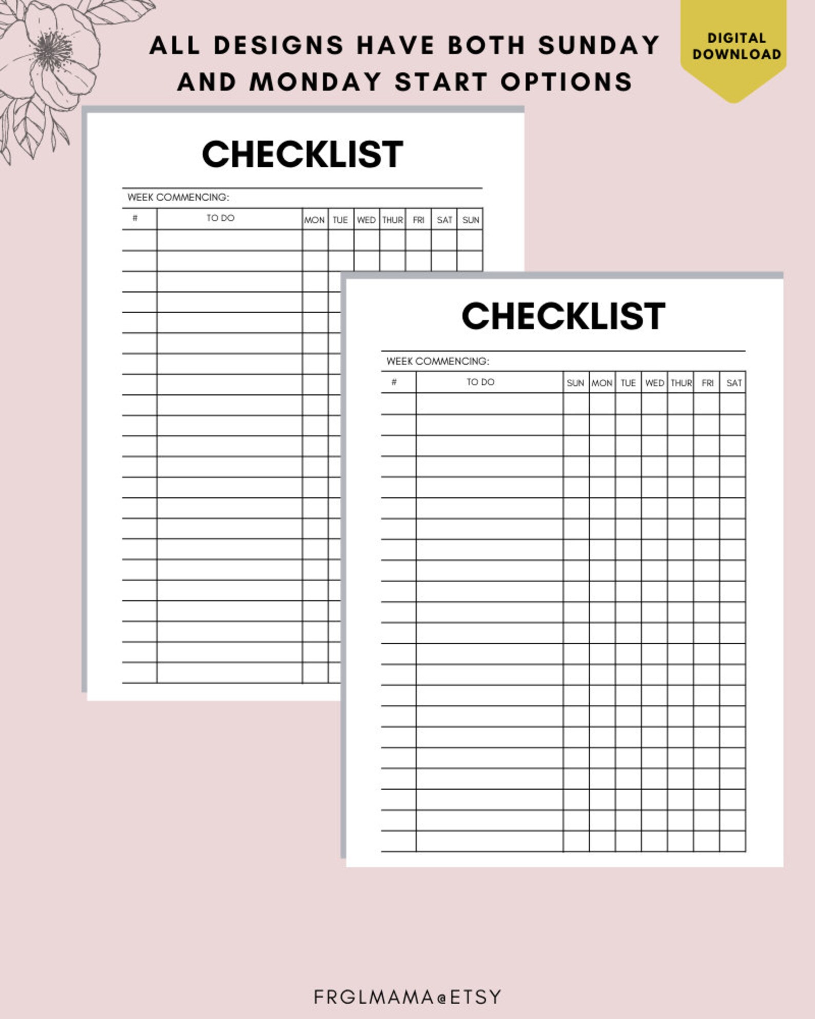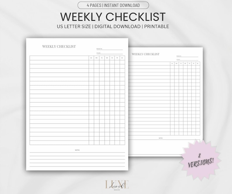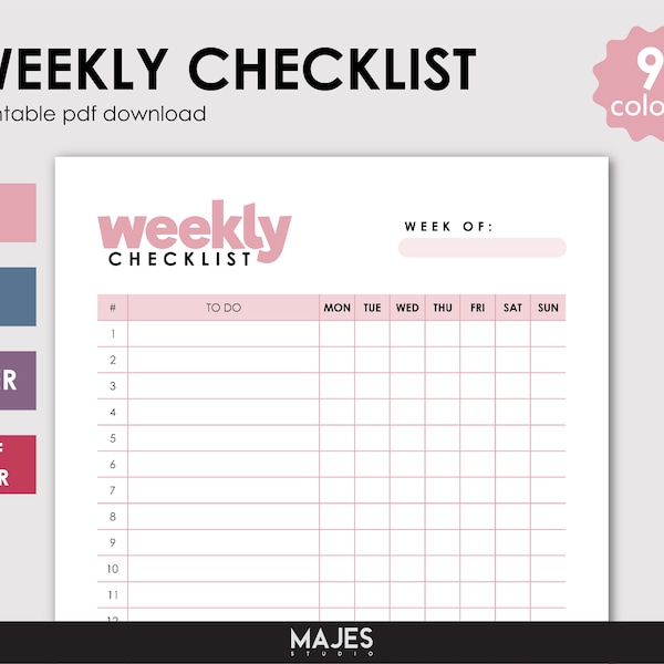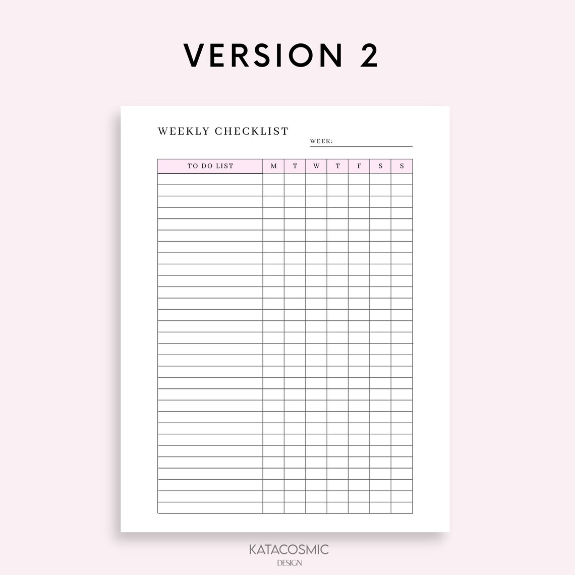 Weekly Checklist Printable PDF Template A4/a5/letter (3 Colors