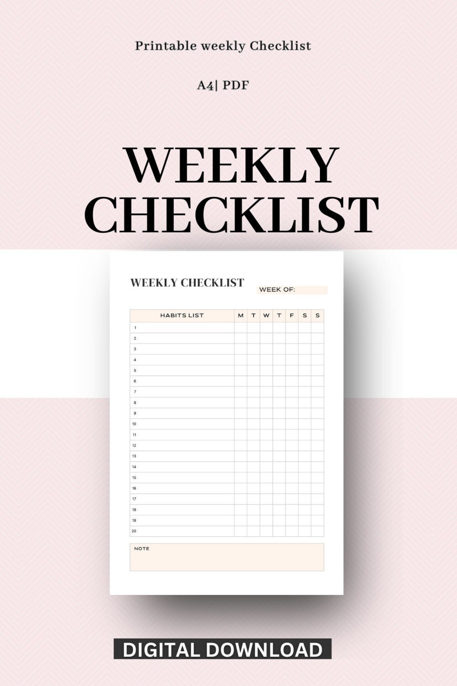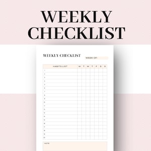 Printable Weekly Checklist Digital Download Weekly Goal Planner Habit