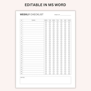 Printable Weekly Checklist Editable to Do List Weekly Checklist