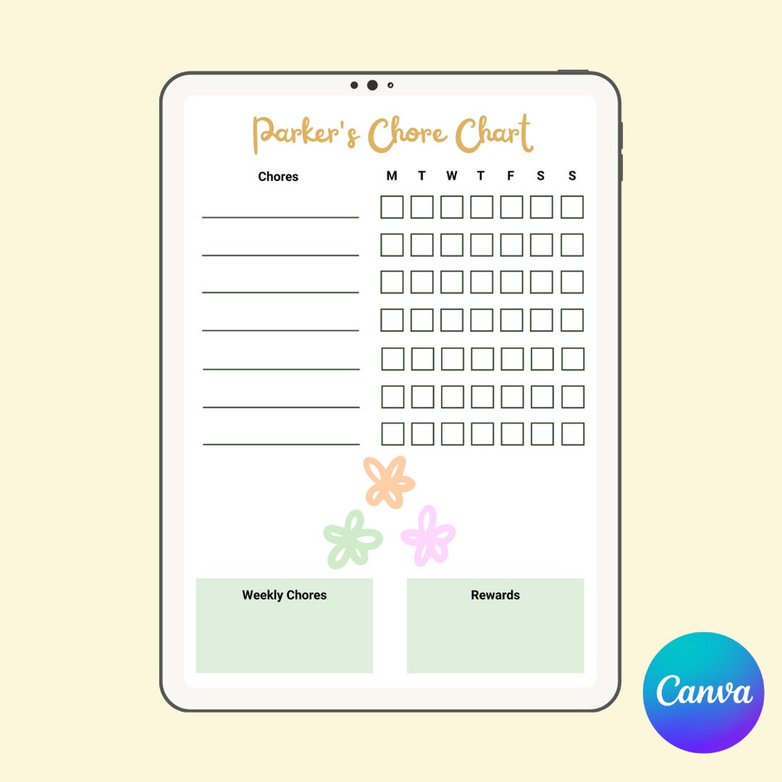Printable Kids Weekly Chore Chart 3 Designs DIY Edit Customise