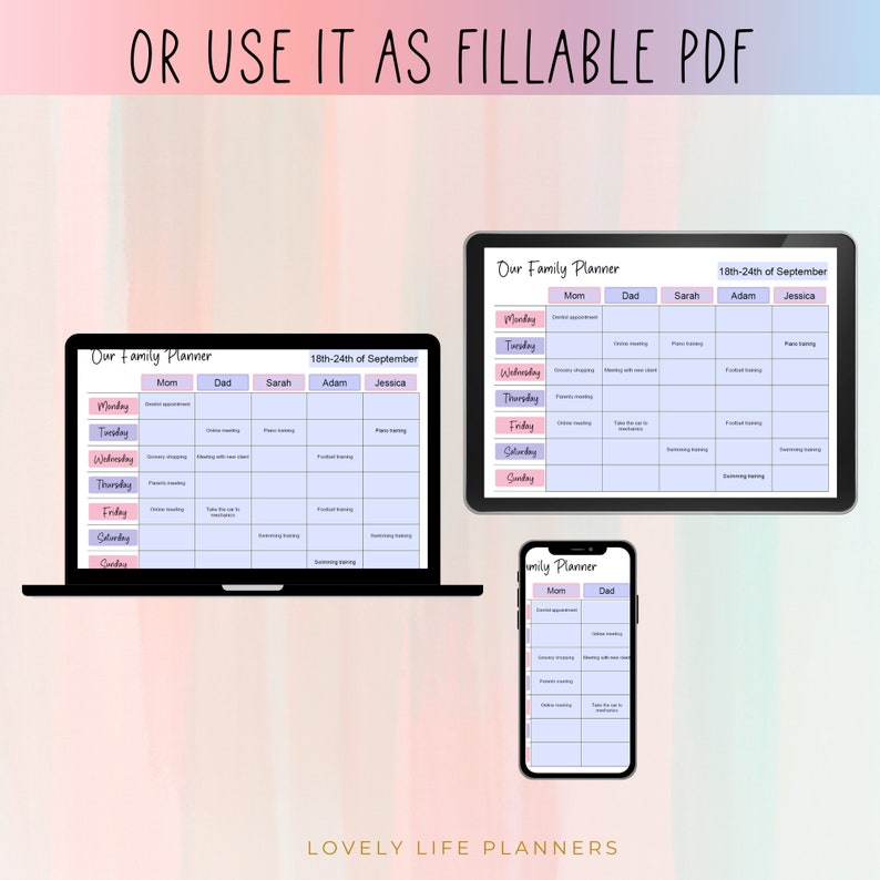 EDITABLE Daily Family Planner Family Schedule Planner Weekly