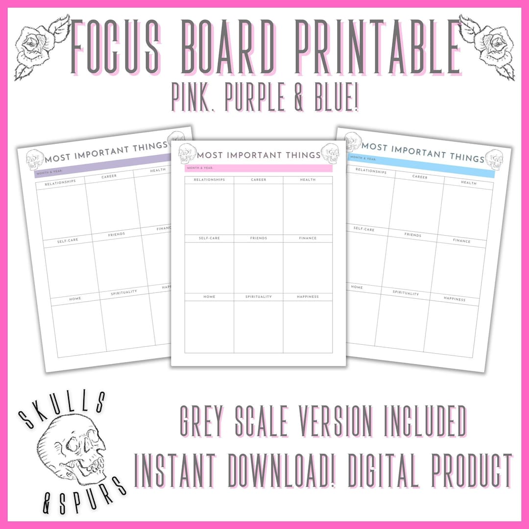 Focus Board Printable Daily Planner Undated Planner Inserts PDF A5