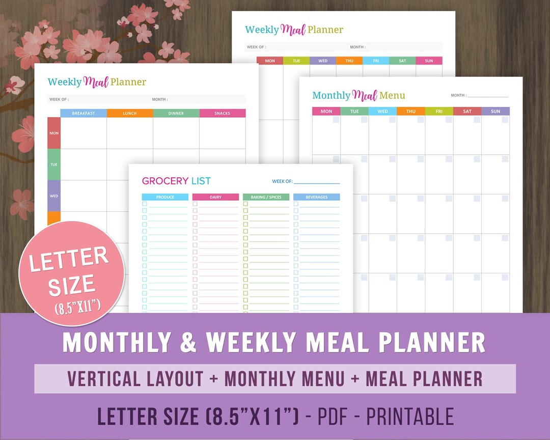Weekly Meal Planner Printable Monthly Meal Menu Meal Planning
