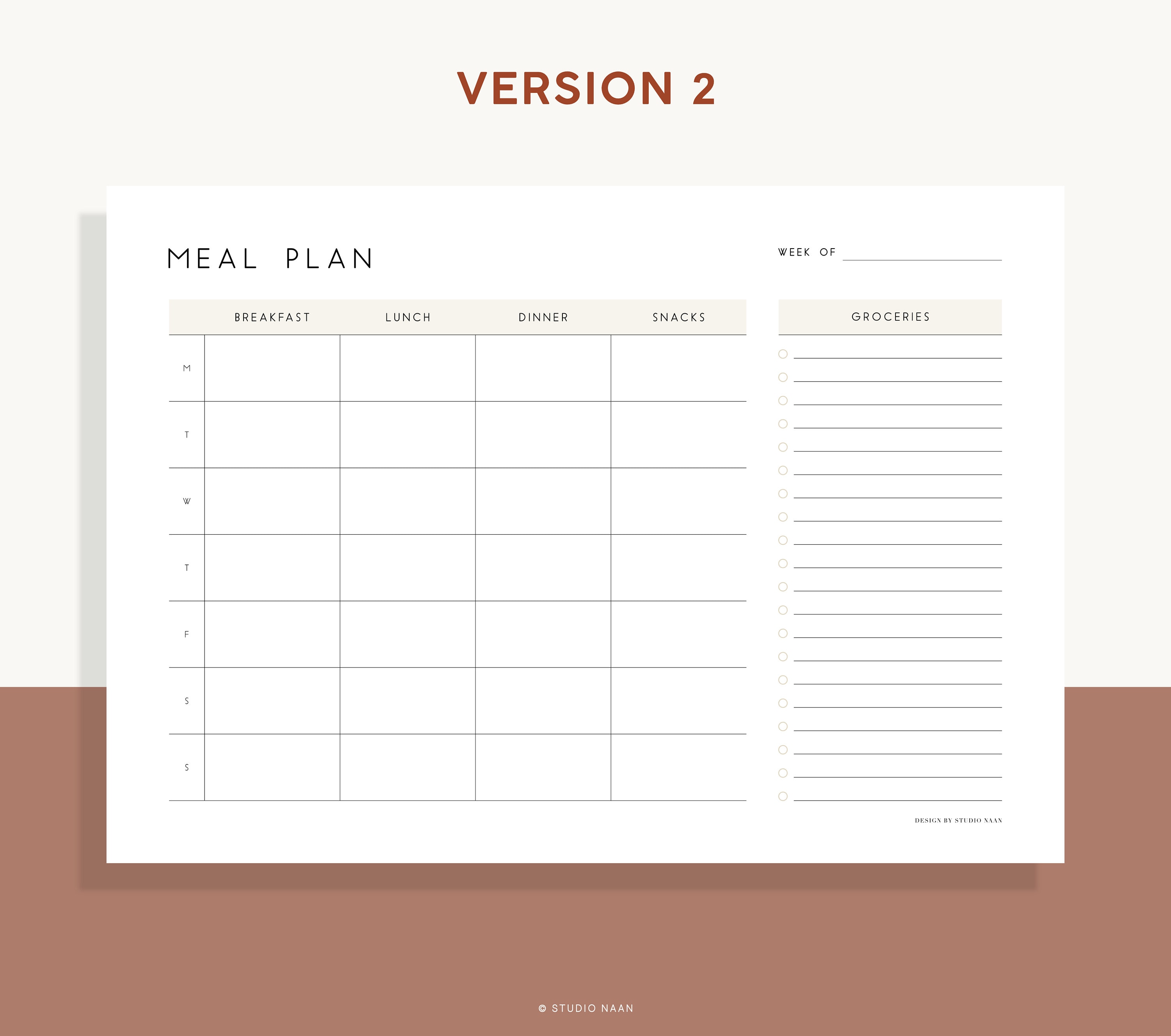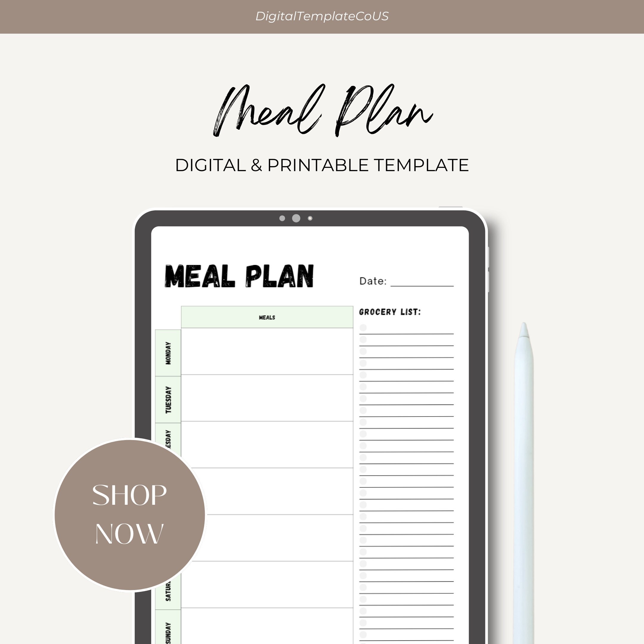 Weekly Meal Plan Template Printable or Digital Meal Planner Plus