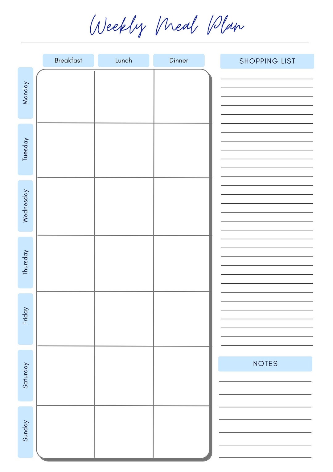 Weekly Meal Planner with Grocery List Printable Template 7 Inspire