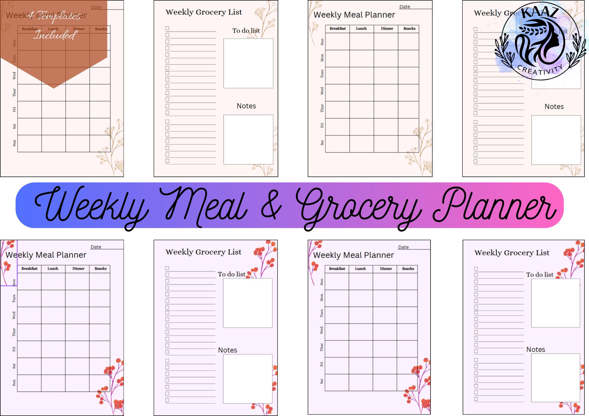 Weekly Meal Planner and Grocery List Graphic by JUNDI · Creative Fabrica