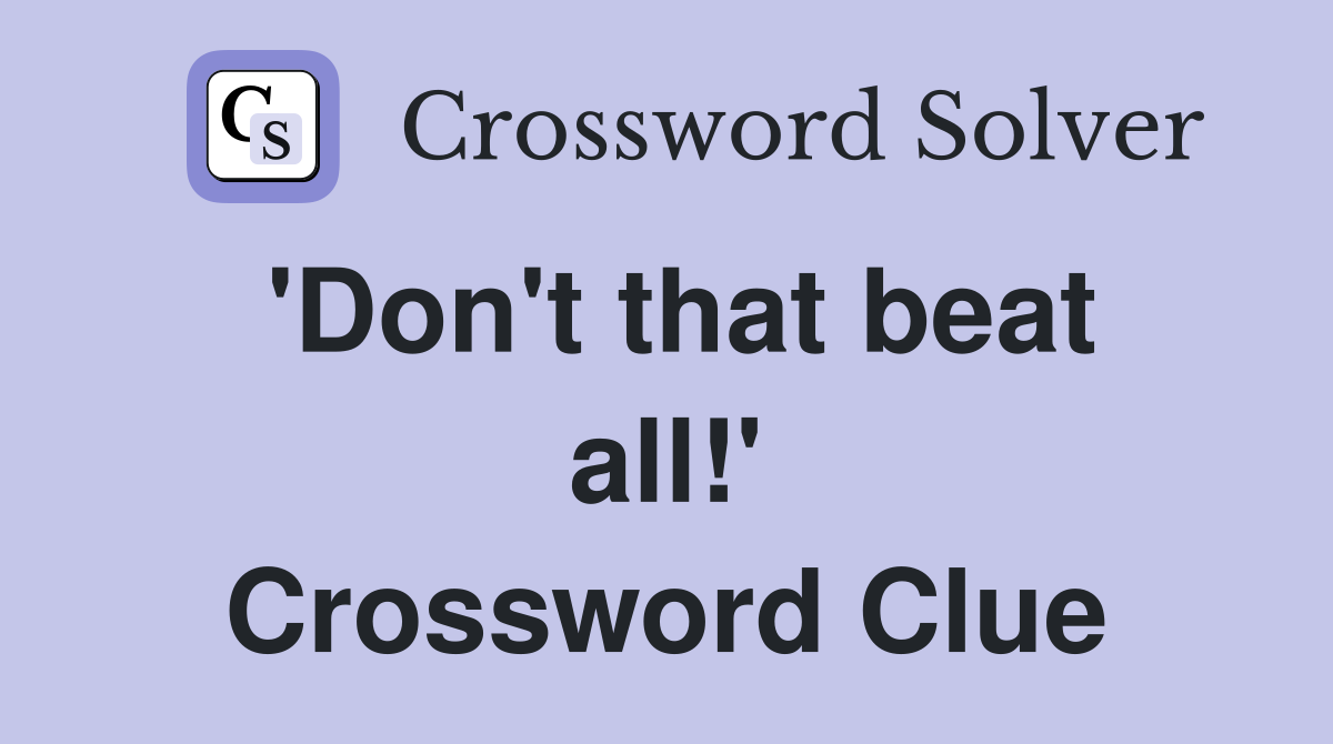#39 Don #39 t that beat all #39 Crossword Clue Answers Crossword Solver
