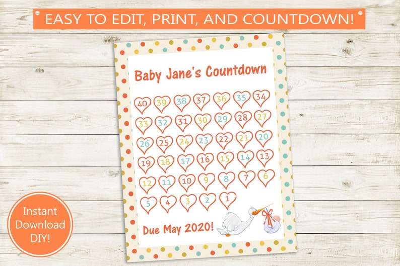 Printable Weekly Pregnancy Calendar // Editable PDF Countdown Etsy