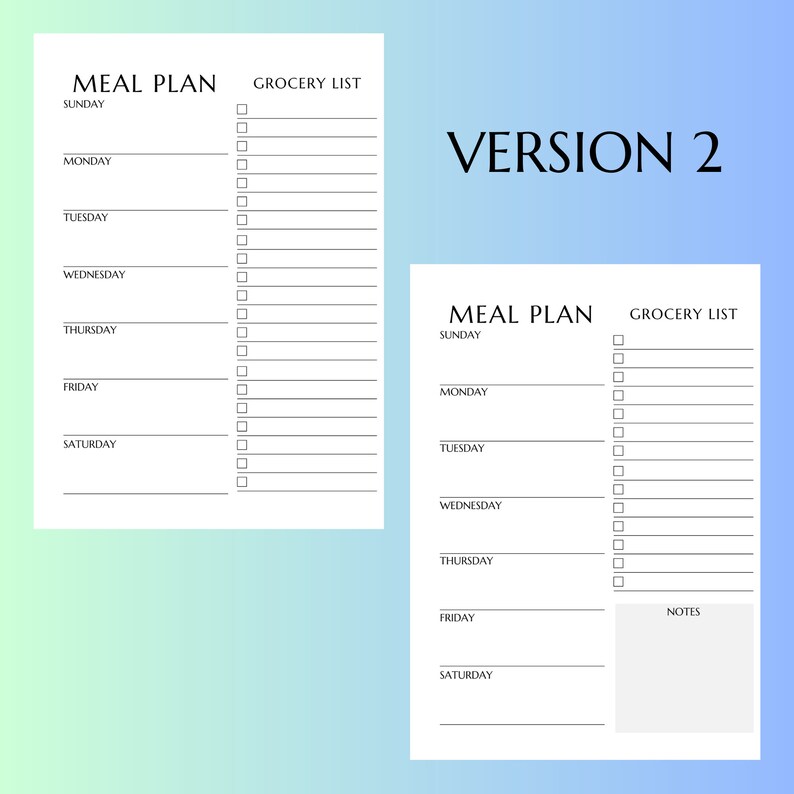 Weekly Printable Meal Planner and Grocery List Template 7 Day Etsy