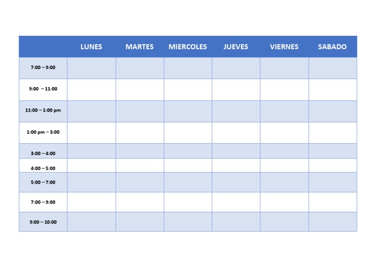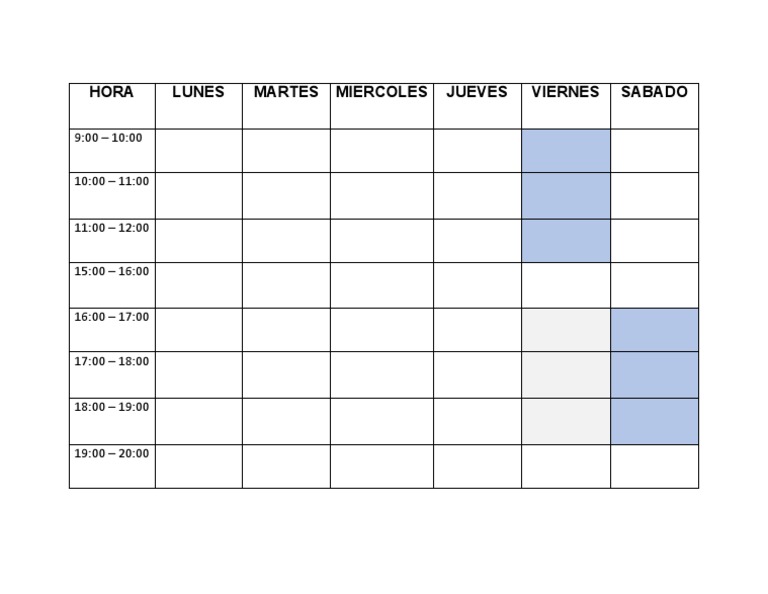 Horario semanal para imprimir