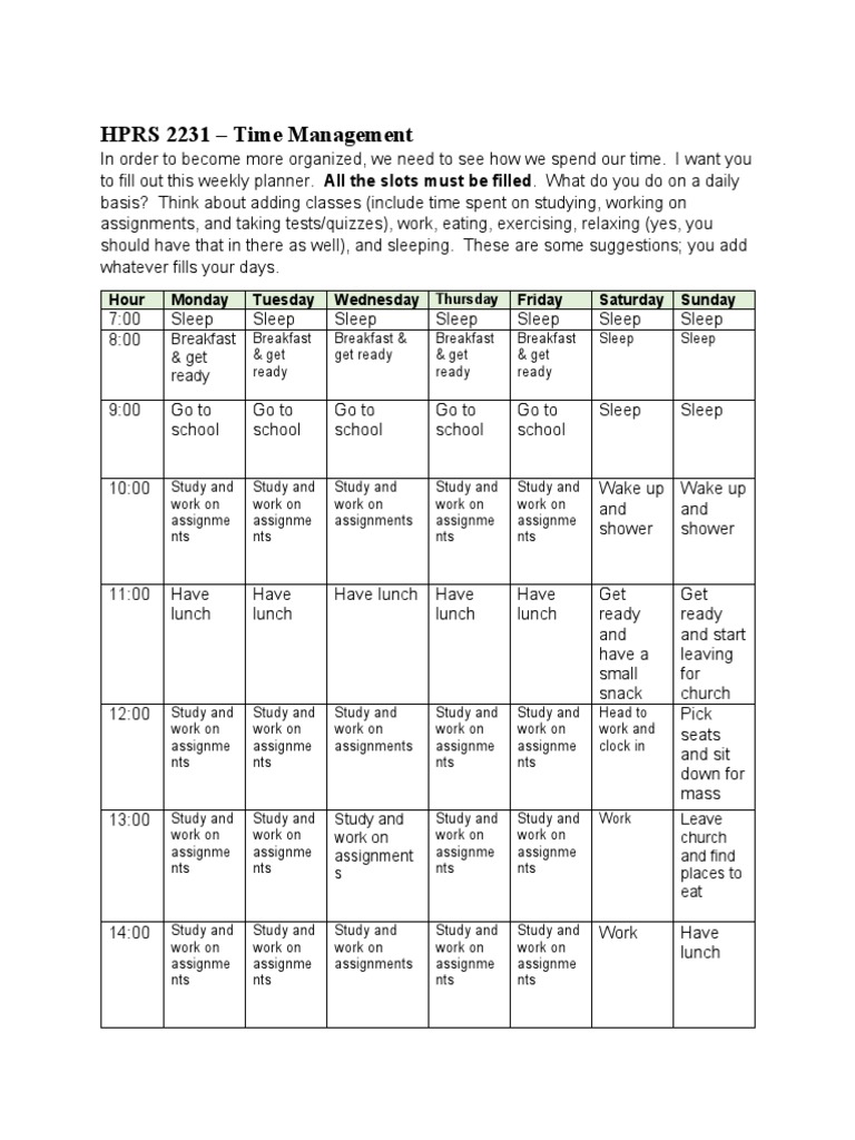Weekly Time Management Template And Better Time Management Will Allow