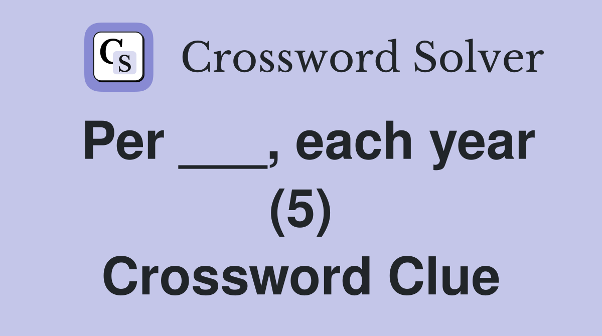 Per each year (5) Crossword Clue Answers Crossword Solver