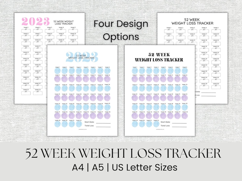 Printable annual weight loss tracker 5 x digital weekly weight tracker