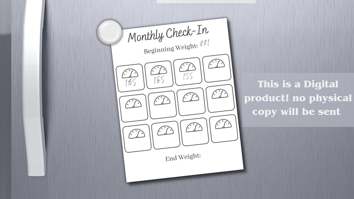 Monthly Weigh in Weight Loss Calendar Weight Loss Tracker Weight Loss
