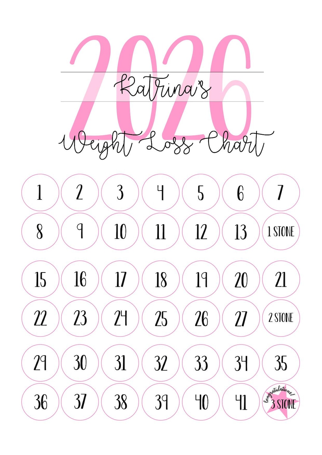 Personalised 2026 Weight Loss Chart Print With Stickers Diet Tracker Etsy