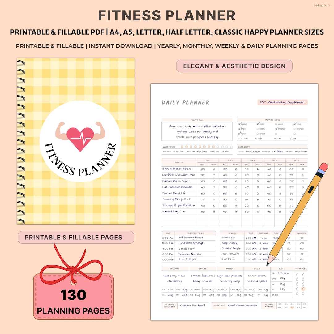 Printable Fitness Planner Bundle Undated Workout Tracker Meal