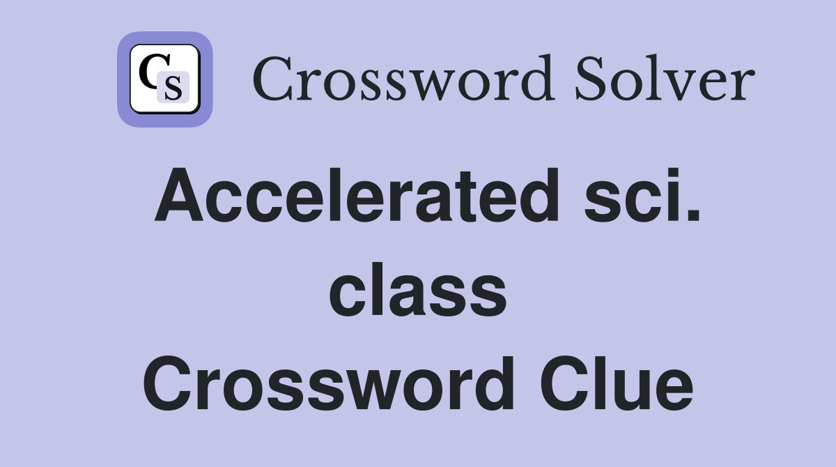 Accelerated sci class Crossword Clue Answers Crossword Solver