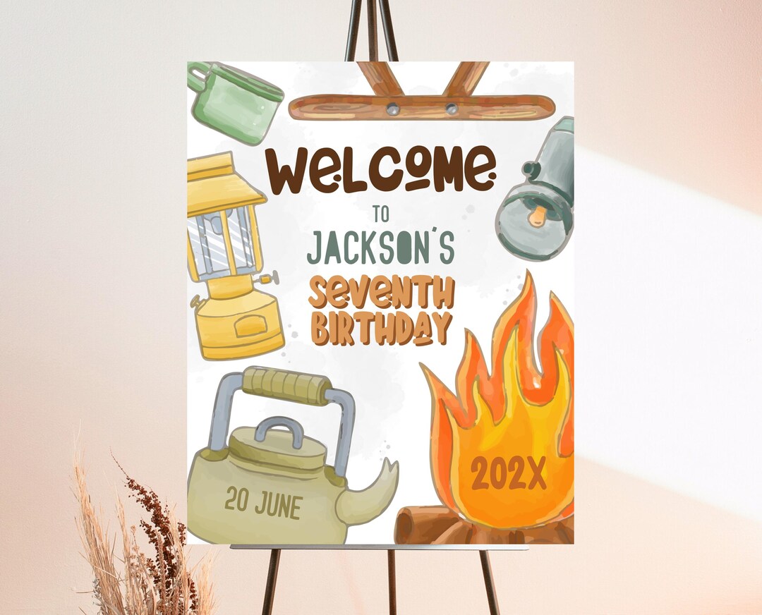 Editable Boy Camp Birthday Welcome Sign: Printable Camping Party Banner
