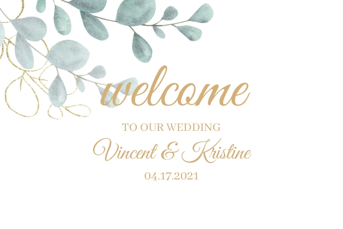 Marge Creates Eucalyptus Gold Wedding Welcome Sign Templates