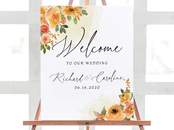 Editable Orange Welcome Sign Templates Floral Wedding Welcome Signs