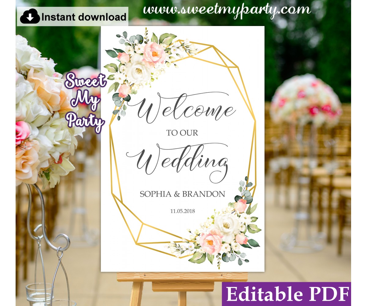 Wedding Welcome Sign Printable sign Editable template Editable sign