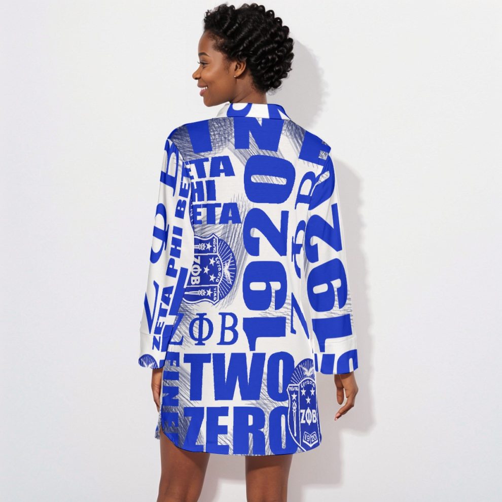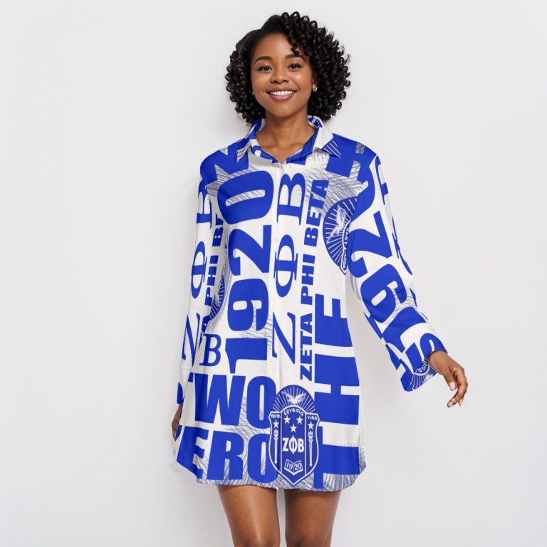 Zeta Phi Beta Crossword Lapel Shirt Dress With Long Sleeve Divine
