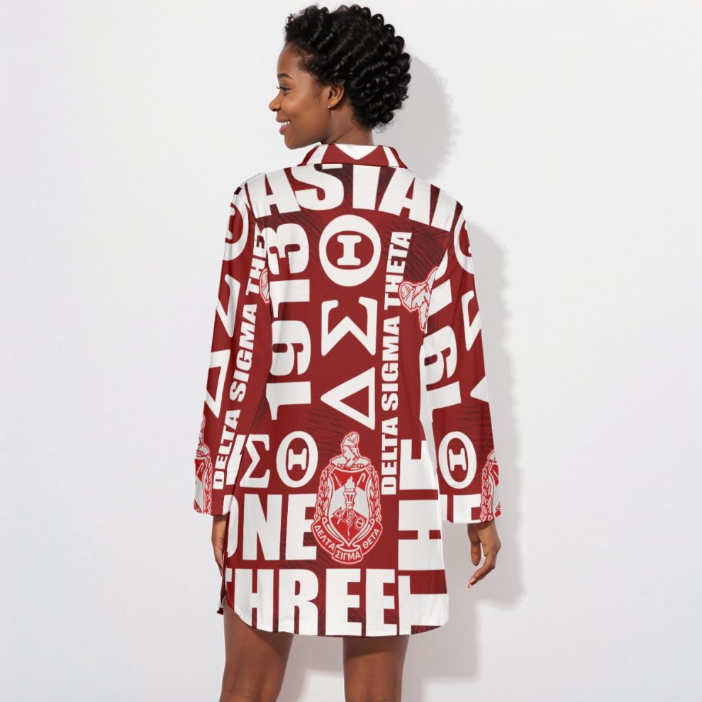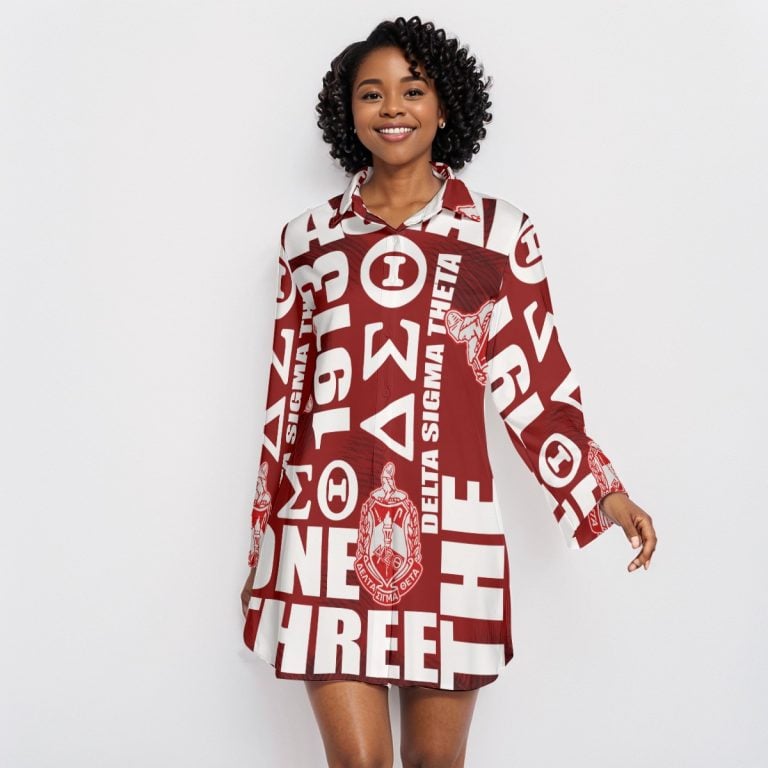 Delta Sigma Theta Crossword Lapel Shirt Dress With Long Sleeve Divine
