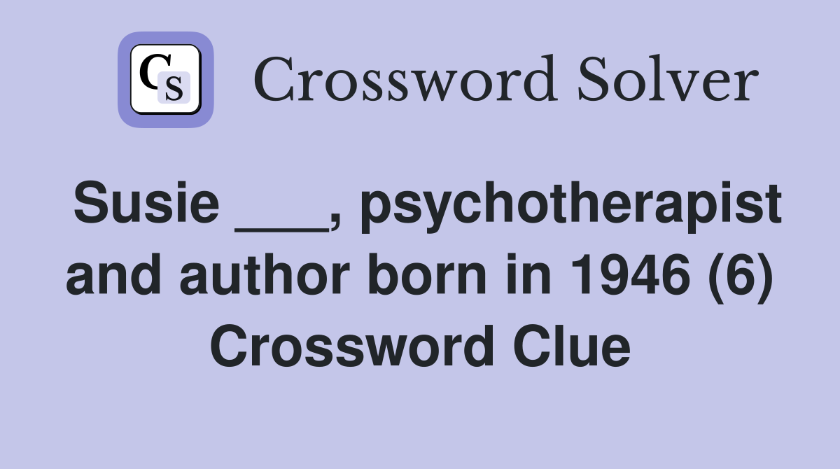 Susie psychotherapist and author born in 1946 (6) Crossword Clue