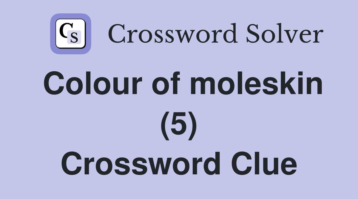Colour of moleskin (5) Crossword Clue Answers Crossword Solver